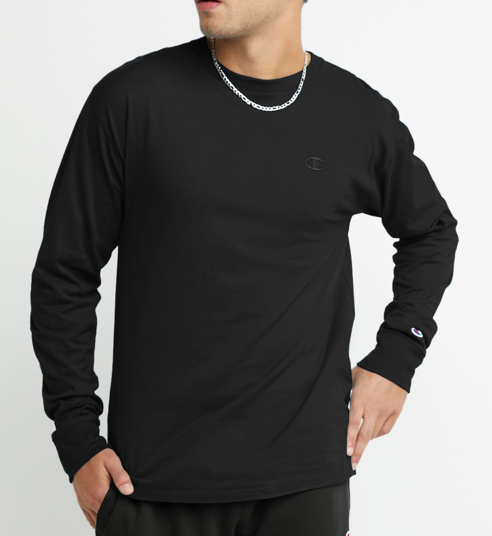 The Champion Classic Athletic Fit Jersey Long Sleeve Tee T2978 has a ribbed neck band and wide, ribbed cuffs. Champion's Classic Athletic Fit Jersey Long Sleeve Tee is made of cotton and polyester.