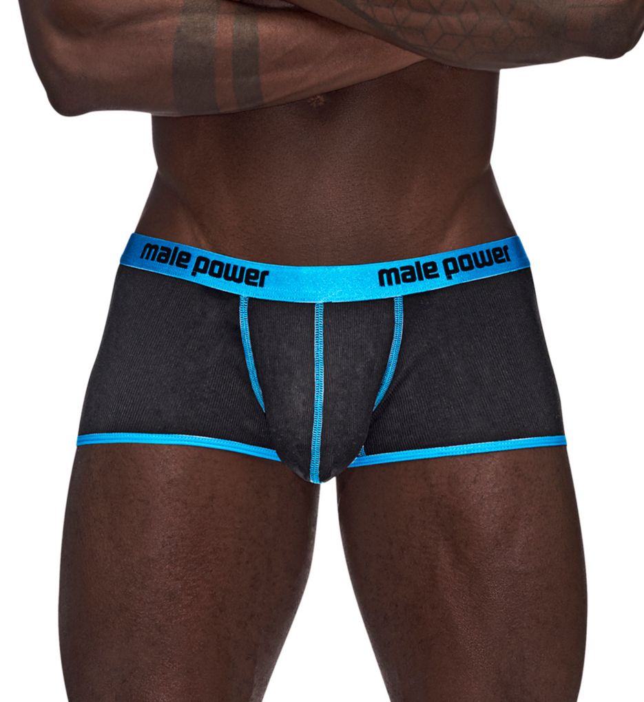 Make a sexy statement in this ribbed knit mini trunk. Made of modal and spandex.