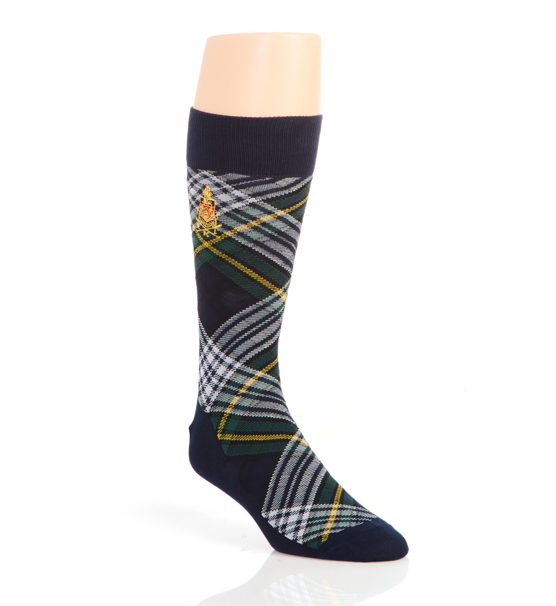 The Polo Ralph Lauren Dress Gordon Tartan Sock 889684 features a colorful plaid pattern with embroidered decoration on the legs. Polo Ralph Lauren's Dress Gordon Tartan Sock is made of polyester/cotton/nylon/spandex.
